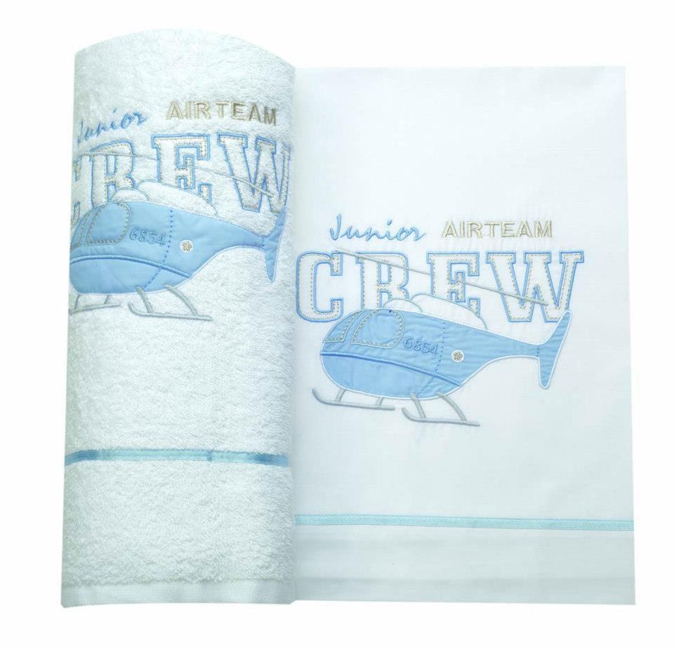 Λαδόπανα Βάπτισης με θέμα ελικόπτερο ελληνικής κατασκευής άριστης ποιότητας βαμβακερά. Το σετ περιλαμβάνει πετσέτα μικρή και μεγάλη, σεντονάκι και σετ εσώρουχα.
