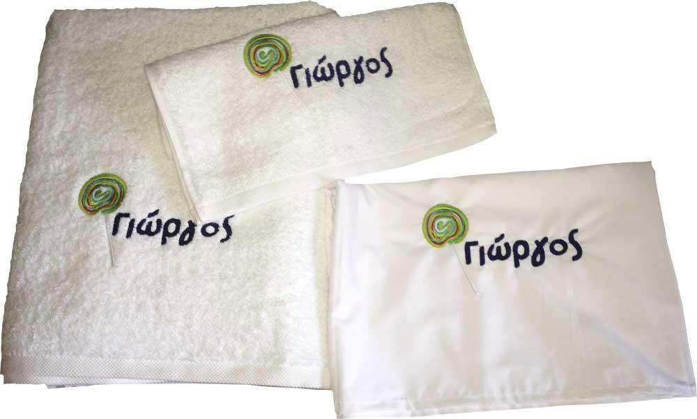 Λαδόπανα ελληνικής κατασκευής άριστης ποιότητας κεντημένα με σχέδιο γλυφιτζούρι. Το σετ περιλαμβάνει πετσέτα μικρή και μεγάλη, σεντονάκι και σετ εσώρουχα.