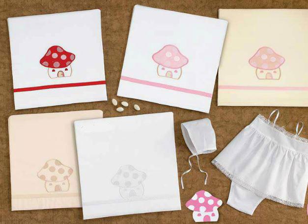 Λαδόπανα Βάπτισης με θέμα μανιταρόσπιτο ελληνικής κατασκευής άριστης ποιότητας βαμβακερά σε διάφορες αποχρώσεις. Το σετ περιλαμβάνει πετσέτα μικρή και μεγάλη, σεντονάκι και σετ εσώρουχα.