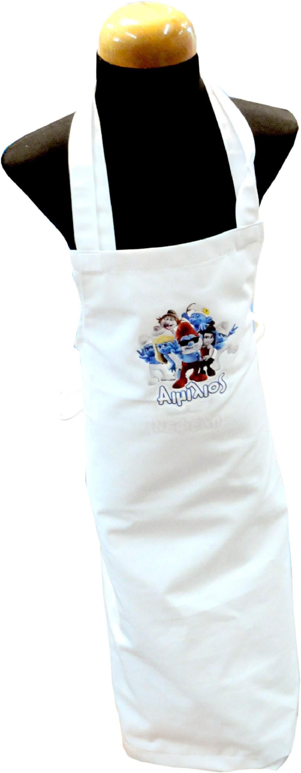 Ποδιά για το νονό ή τη νονά με θέμα στρουμφάκια. Μπορεί να γίνει σε οποιοδήποτε θέμα βάπτισης. Μπορεί να κεντηθεί στην ποδιά σχέδιο ή κείμενο ή και τα δυο.