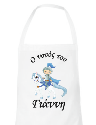 Λευκή ποδιά για το νονό ή τη νονά, εκτυπωμένη με θέμα "Ιππότης". Γράψτε στα σχόλια μέσα στο καλάθι το όνομα του παιδιού σας.
