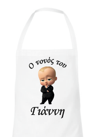 Λευκή ποδιά για το νονό ή τη νονά, εκτυπωμένη με θέμα "Little Boss". Γράψτε στα σχόλια μέσα στο καλάθι το όνομα του παιδιού σας.