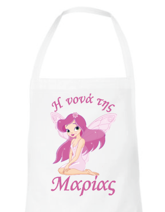 Λευκή ποδιά για το νονό ή τη νονά, εκτυπωμένη με θέμα "Νεράιδα". Γράψτε στα σχόλια μέσα στο καλάθι το όνομα του παιδιού σας.