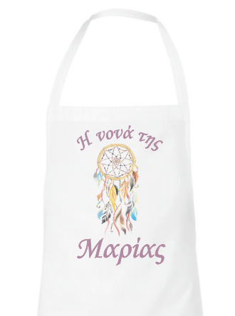 Λευκή ποδιά για το νονό ή τη νονά, εκτυπωμένη με θέμα "Ονειροπαγίδα". Γράψτε στα σχόλια μέσα στο καλάθι το όνομα του παιδιού σας.