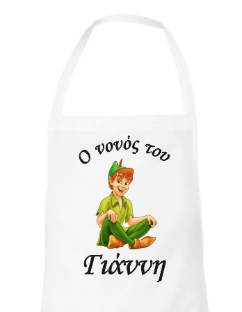 Λευκή ποδιά για το νονό ή τη νονά, εκτυπωμένη με θέμα "Πίτερ Παν". Γράψτε στα σχόλια μέσα στο καλάθι το όνομα του παιδιού σας.
