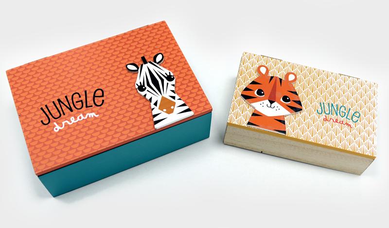 Σετ ξύλινο κουτί ζούγκλα με διαστάσεις 17cm x 12cm x 6cm και 15cm x 9cm x 4.5cm.