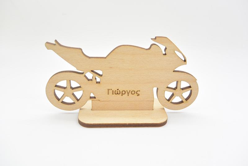 Μπομπονιέρα Ξύλινη μηχανή με βάση. Η τιμή αφορά δεμένη μπομπονιέρα με 5 κουφέτα αμυγδάλου ή 9 smarties. Μπορεί να γραφτεί το όνομα του παιδιού σας.Διάσταση 12 x 6,5 cm.