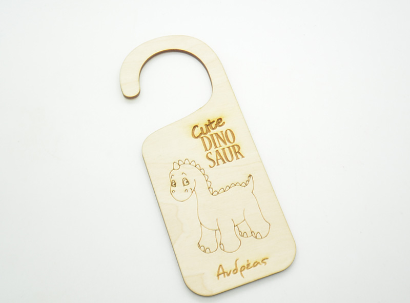 Διακοσμητικό πόρτας για μπομπονιέρα με θέμα δεινοσαυράκι. Διάσταση 6 x 15 εκ. Μπορεί να χαρακτεί το όνομα του μωρού.