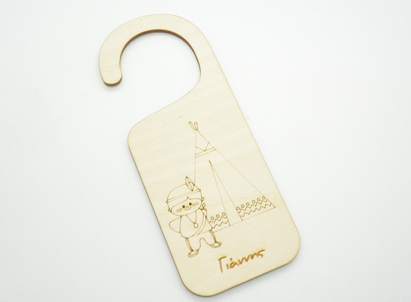 Διακοσμητικό πόρτας για μπομπονιέρα με θέμα ινδιάνος. Διάσταση 6 x 15 εκ. Μπορεί να χαρακτεί το όνομα του μωρού.