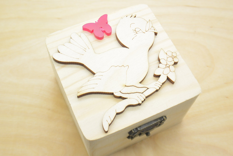 Ξύλινο κουτί πουλάκι με λεπτομέρειες plexiglass. Μπορείτε να επιλέξετε το χρώμα στις λεπτομέρειες plexiglass. Διάσταση κουτί 8 x 8 x 5 cm. Η τιμή αφορά άδετο το αντικείμενο.