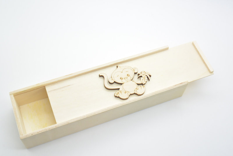 Ξύλινη Κασετίνα μαϊμουδάκι με διάσταση 20cm x 6cm x 3.4cm.