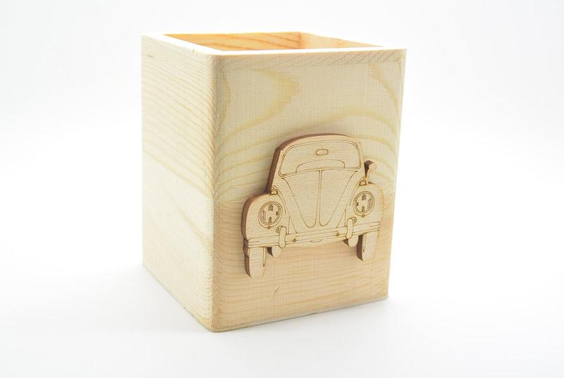 Μπομπονιέρα Ξύλινη Μολυβοθήκη σκαραβαίος. Διάσταση 8 x 8 x 10 εκ. Η τιμή αφορά σκέτο το αντικείμενο. Απο το υπομενού μπορείτε να επιλέξετε με επιπλέον χρέωση να γίνει δεμένη μπομπονιέρα με 5 κουφέτα αμυγδάλου ή 9 smarties.