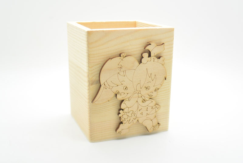 Μολυβοθήκη Ξύλινη σταλίτσα και bamm bamm με διάσταση 8 x 8 x 10 εκ. Η τιμή αφορά σκέτο το αντικείμενο.