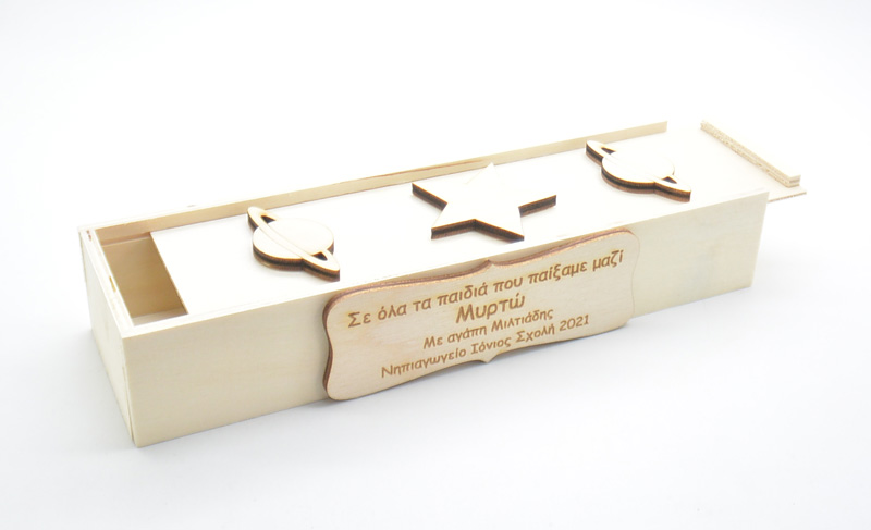 Αναμνηστική Κασετίνα δώρο στους συμμαθητές της τάξης σας με αφιέρωση της επιλογής σας και το όνομα το κάθε παιδιού. Με διαστάσεις 20cm x 6cm x 3.4cm.