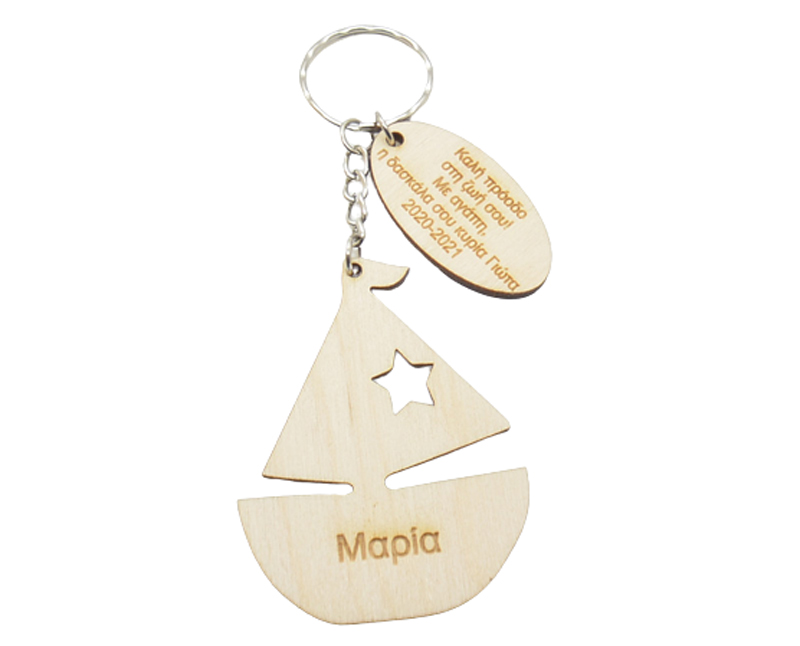Αναμνηστικό Μπρελόκ καράβι με το όνομα του κάθε παιδιού δώρο από την δασκάλα και ταμπελάκι αφιέρωσης. Διάσταση 12 εκ.