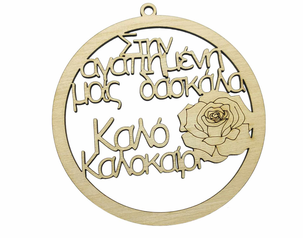 Αναμνηστικό δώρο κρεμαστό με τριαντάφυλλο στην αγαπημένη μας δασκάλα με διάσταση 12,7 x 12 εκ.