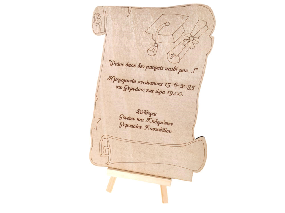 Αναμνηστικό πάπυρος με καβαλέτο με αφιέρωση της επιλογής σας για τους απόφοιτους ή τους εκπαιδευτικούς με διαστάσεις 20 x 15 εκ ο πάπυρος και 23 εκ ύψος μαζί με το καβαλέτο.