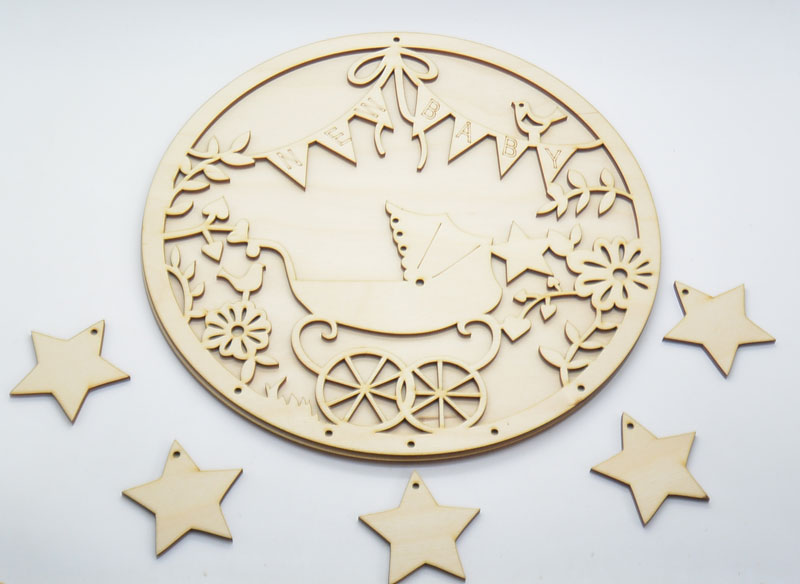 Αναμνηστικό Γέννησης για νεογέννητο αγοράκι με αστεράκια. Μπορεί να χαρακτεί το νοσοκομείο γέννησης, ημερομηνία, ώρα, κιλά και εκατοστά γέννησης. Το ξύλινο διακοσμητικό είναι 28 εκ. Διατίθετε στολισμένο με χρώματα της επιλογής σας.