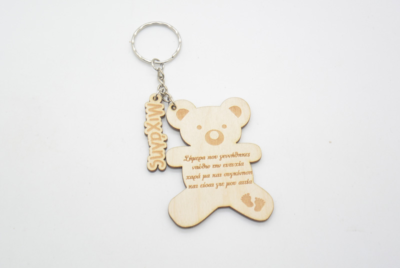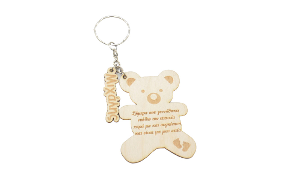 Μπρελόκ αρκουδάκι με όνομα και ευχή της επιλογής σας. Διάσταση 12 εκ με τον κρίκο.