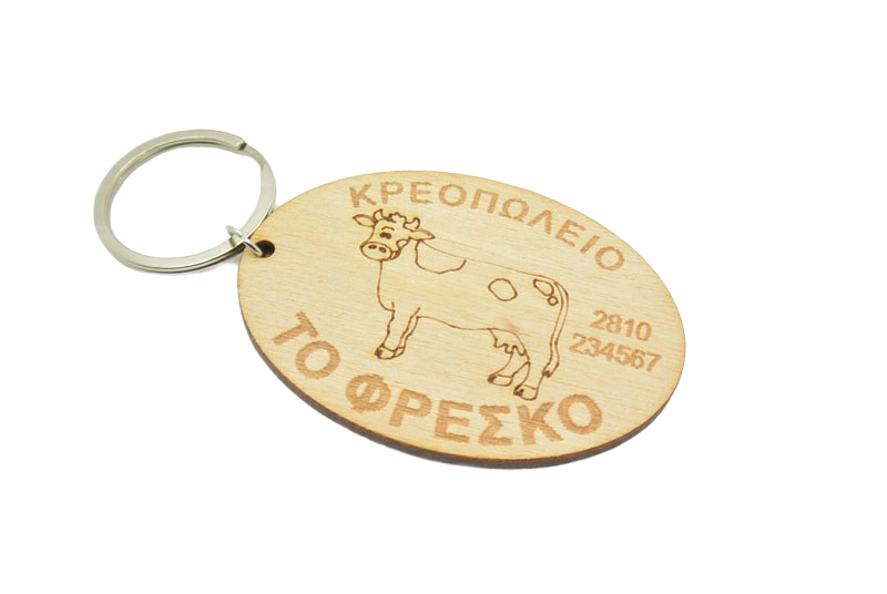 Διαφημιστικό Μπρελόκ για κατάστημα κρεοπωλείο. Διάσταση 10 x 5 εκ. Απο το υπομενού μπορείτε να επιλέξετε να γίνει μαγνητάκι αντί για μπρελόκ. Ελάχιστη ποσότητα παραγγελίας 50 τεμάχια.