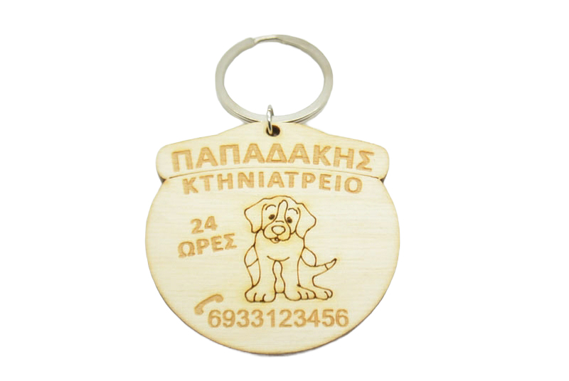 Διαφημιστικό Μπρελόκ για κτηνιατρείο. Διάσταση 8 x 5,5 εκ. Απο το υπομενού μπορείτε να επιλέξετε να γίνει μαγνητάκι αντί για μπρελόκ. Ελάχιστη ποσότητα παραγγελίας 50 τεμάχια.