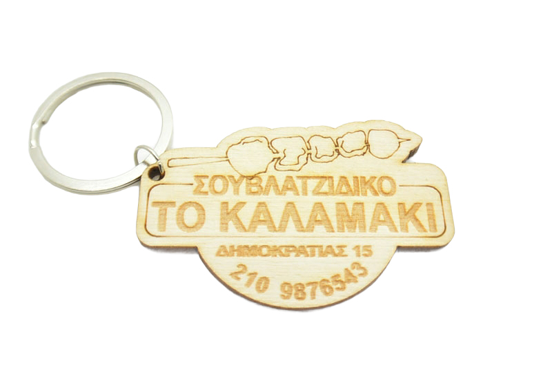 Διαφημιστικό Μπρελόκ για σουβλατζίδικο. Διάσταση 7 x 6 εκ. Απο το υπομενού μπορείτε να επιλέξετε να γίνει μαγνητάκι αντί για μπρελόκ. Ελάχιστη ποσότητα παραγγελίας 50 τεμάχια.