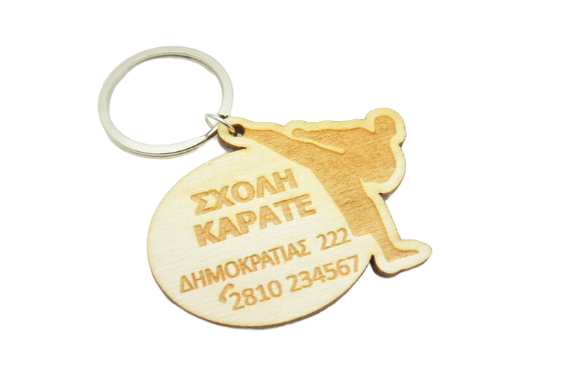 Διαφημιστικό Μπρελόκ για σχολή καράτε. Διάσταση 7,6 x 6 εκ. Απο το υπομενού μπορείτε να επιλέξετε να γίνει μαγνητάκι αντί για μπρελόκ. Ελάχιστη ποσότητα παραγγελίας 50 τεμάχια.