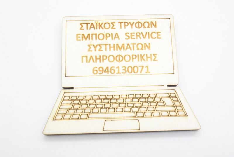 Διαφημιστικό Μαγνητάκι ή μπρελόκ για κατάστημα service Η/Υ με διαστάσεις 7 x 5.5 εκ.