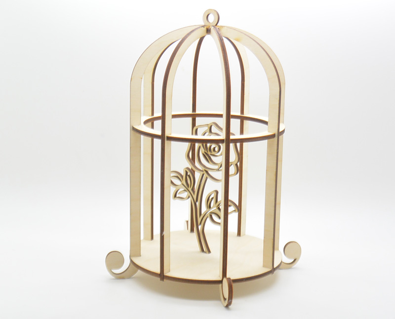 Ξύλινο κλουβί μεγάλο με τριαντάφυλλο για δώρο ή διακόσμηση γάμου βάπτισης. Διαστάσεις 21,5 x 15 εκ.