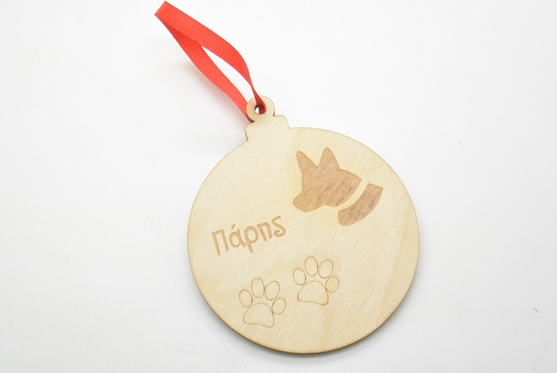 Χριστουγεννιάτικο Στολίδι για σκυλάκια με όνομα της επιλογής σας. Διάσταση Ξύλινου διακοσμητικού 10 x 8.4 εκ.
