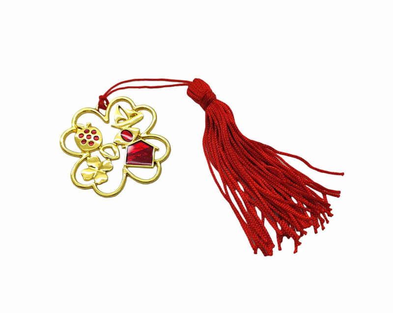 Εταιρικό Γούρι τετράφυλλο τριφύλλι καλή τύχη με σμάλτο, με φούντα σε χρυσό απόχρωση. Διάσταση μεταλλικού διακοσμητικού 4.4 cm, διάσταση φούντας 8.5cm. Μπορεί να γίνει και ασημί αποχρωση.