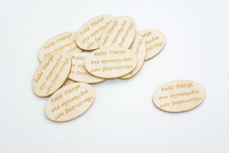 Ξύλινο Διακοσμητικό με την φράση Καλό Πάσχα στο αγαπημένο μου βαφτιστήρι. Διάσταση 5 x 3.2 εκ.