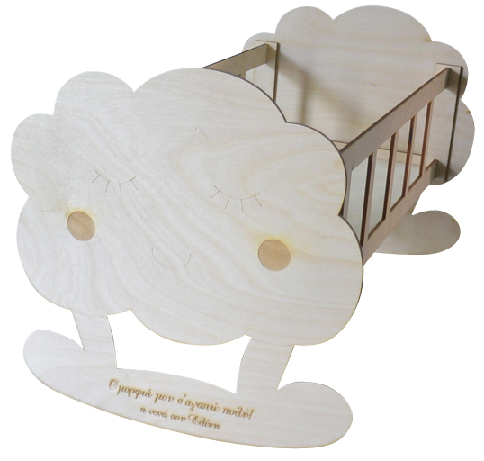Κούνια Κούκλας μεγάλη με διαστάσεις 32 x 32 x 50. Μπορεί να χαρακτή ότι αφιέρωση θέλετε.