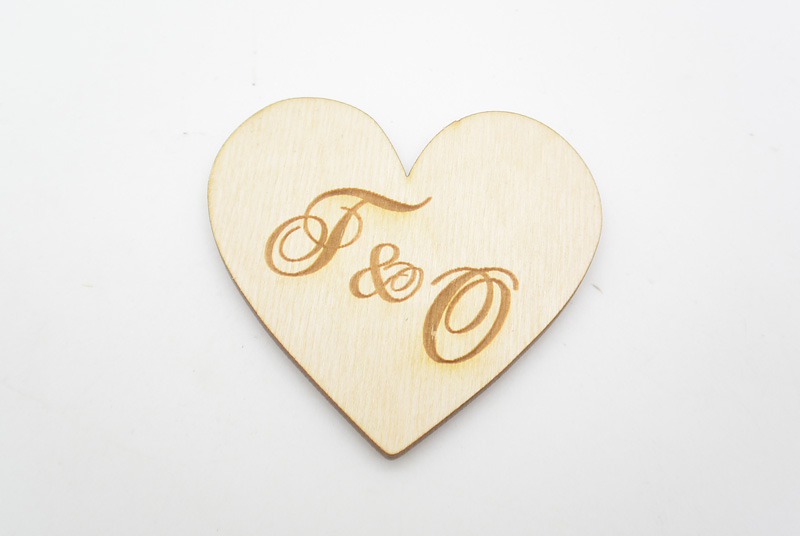 Ξύλινα Καρδιά με τα μονογράμματα του ζευγαριού με διάσταση 7 x 6,5 εκ.