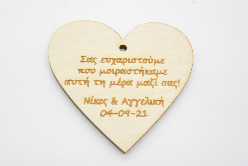 Ξύλινη καρδιά ευχαριστήρια για τον γάμο ή την δεξίωση σας, διάσταση 6 εκ.