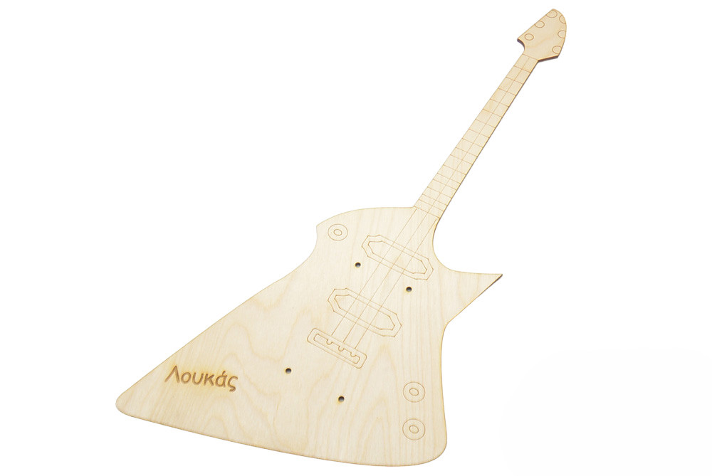 Ξύλινη Πλάτη λαμπάδας ηλεκτρική κιθάρα με το όνομα του παιδιού με διαστάσεις πλάτης 39 x 17 εκ.