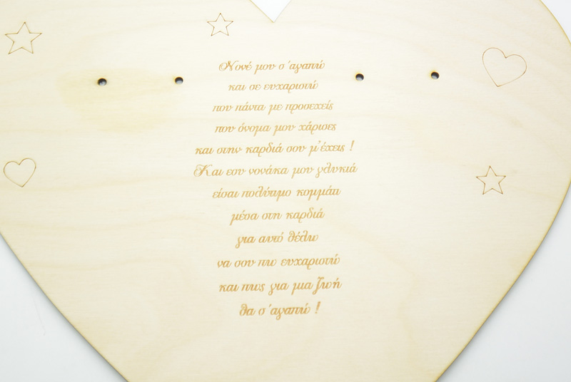 Ξύλινη Πλάτη λαμπάδας μεγάλη καρδιά διπλή με αφιέρωση με διαστάσεις 32 x 30 εκ.