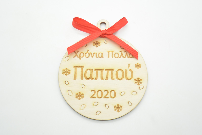 Ξύλινη Χριστουγεννιάτικη μπάλα χρόνια πολλά παππού με διάσταση 10 x 8.5 εκ.