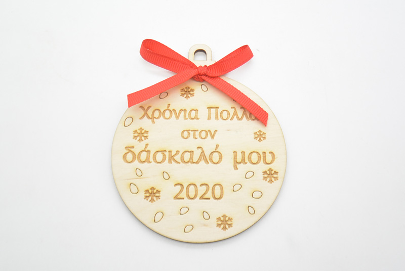 Ξύλινη Χριστουγεννιάτικη μπάλα χρόνια πολλά στον δάσκαλο μου με διάσταση 10 x 8.5 εκ.