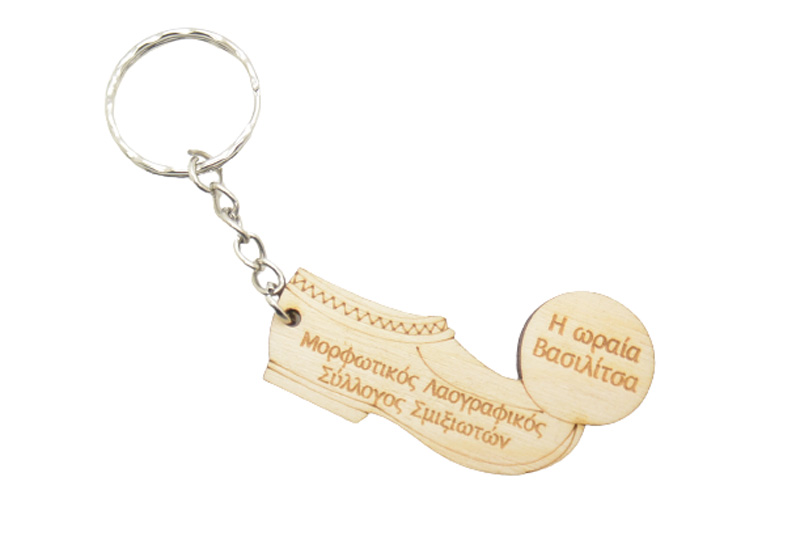 Ξύλινο Αναμνηστικό Μπρελόκ συλλόγου τσαρούχι με διάσταση 12 εκ.