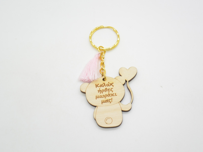 Ξύλινο Μπρελόκ αναμνηστικό γέννησης με μύνημα Καλώς ήρθες μωράκι μας. Διάσταση 11.5 εκ. Η φούντα και ο κρίκος μπορεί να γίνει ότι χρώμα θέλετε.