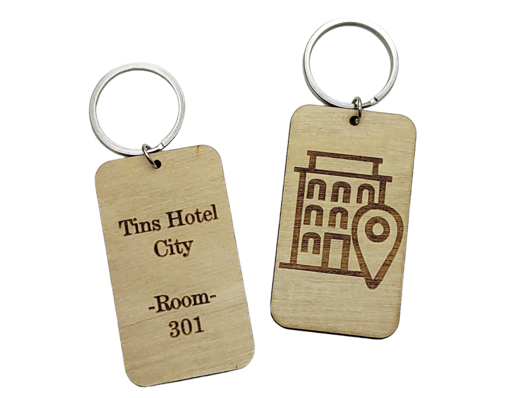 Ξύλινο Μπρελόκ δύο όψεων για κλειδιά ξενοδοχείου με διάσταση ξύλινου 7 εκ και συνολικό μήκος με τον κρίκο 10 εκ. Μπορεί να γίνει σε ότι σχέδιο θέλετε.