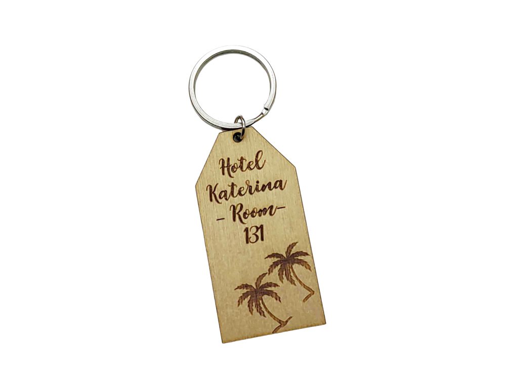 Ξύλινο Μπρελόκ για κλειδιά ξενοδοχείου με διάσταση ξύλινου 7 εκ και συνολικό μήκος με τον κρίκο 10 εκ. Μπορεί να γίνει σε ότι σχέδιο θέλετε.