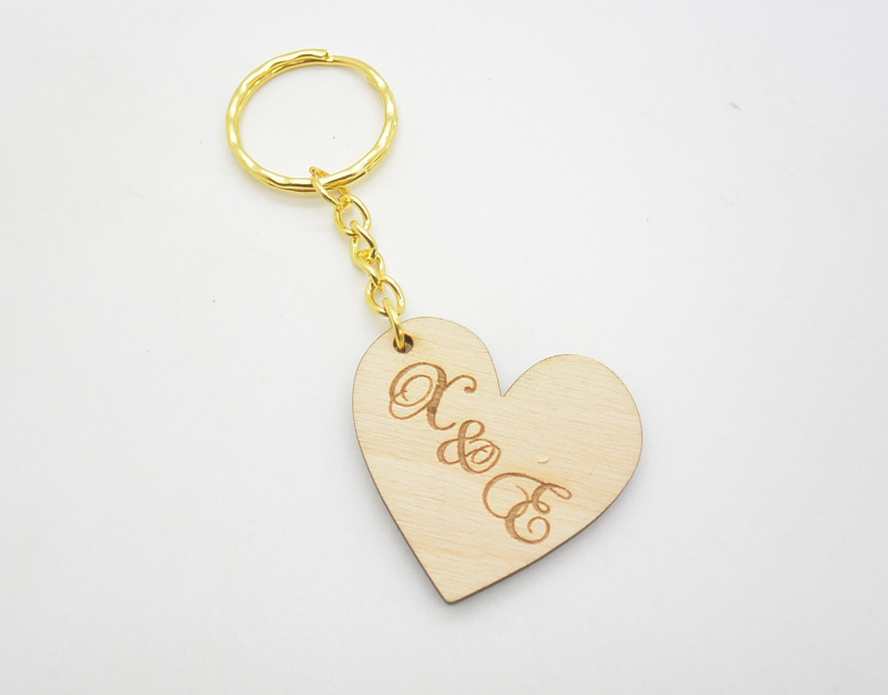 Ξύλινο Μπρελόκ καρδιά με τα μονογράμματα του ζευγαριού. Διαστάσεις 10 εκ.