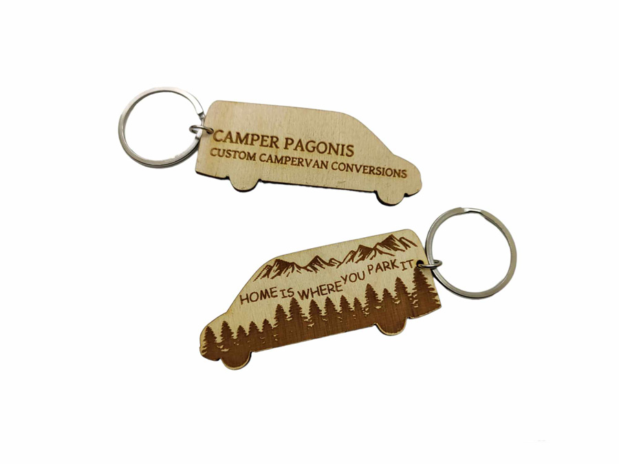 Ξύλινο Διαφημιστικό Μπρελόκ δύο όψεων για συνεργεία αυτοκινήτων με διάσταση μπρελόκ 10,5 εκ με τον κρίκο.