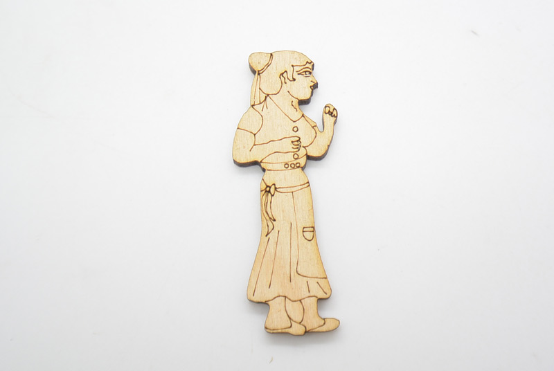 Ξύλινο διακοσμητικό Αγλαΐα η γυναίκα του καραγκιόζη. Διαστάσεις 7 x 2,7 εκ.