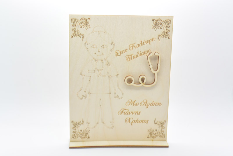 Ξύλινο Διακοσμητικό αναμνηστικό γιατρού. Μπορείτε να επιλέξετε το κείμενο που θα χαρακτεί. Διάσταση 20 x 15 εκ.