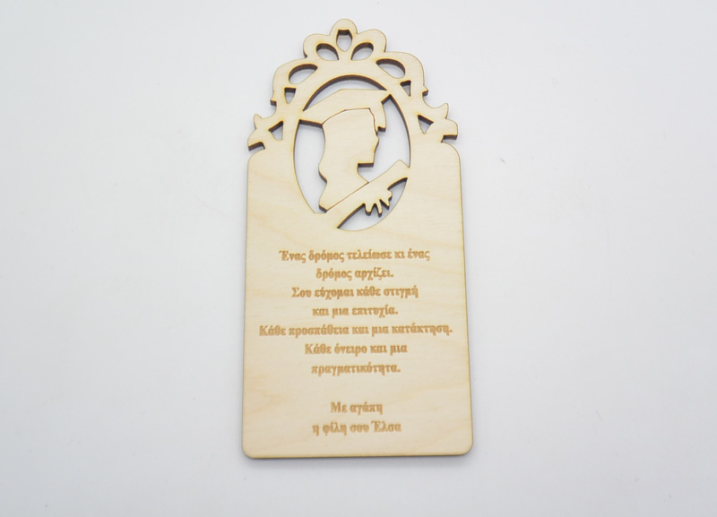 Ξύλινο Διακοσμητικό αποφοίτησης με αφιέρωση. Διάσταση 15 x 7.2 cm.