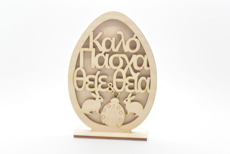 Ξύλινο Διακοσμητικό αυγό καλό Πάσχα θείε και θεία με λαγουδάκια και πασχαλίτσα. Διάσταση 15 εκ.