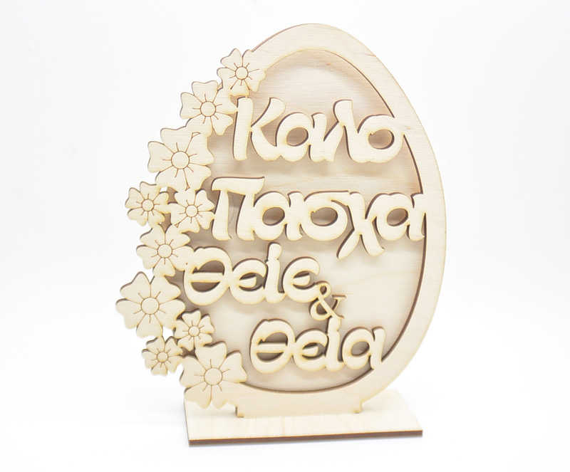 Ξύλινο Διακοσμητικό αυγό καλό Πάσχα θείε & θεία με λουλούδια. Διάσταση 15 εκ.